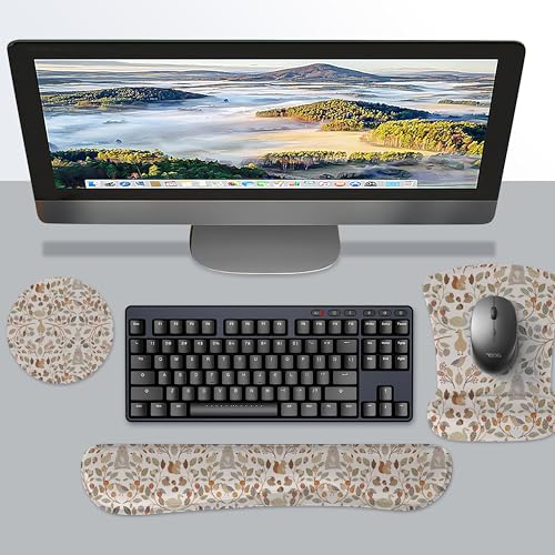 icolor Keyboard Wrist Rest Pad Mouse Pad Set,Ergonomic Mouse Pad for Laptop Computer,Wrist Support Memory Foam Desk Pad for Gaming Office,Non Slip Rubber Mousepad Typing Relief Pain (Mousepad208)