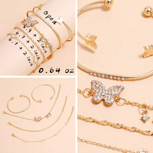 IFKM 6 PACK (24 PCS) Boho Gold Chain Bracelets Set for Women, 14K Gold Plated Multiple Layered Stackable Open Cuff Wrap Bangle Adjustable Link Italian Cuban Jewelry for Women Gift