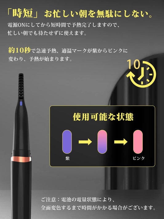 iitrust Hot Eyelash Curler, 2-in-1, Long Keeping, 3-Stage Temperature Adjustment, 10 Seconds Rapid Preheating, Automatically Power Off, USB Powered, Easy to Carry, Black