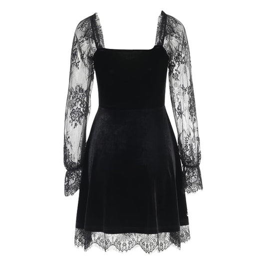 IKADEX Gothic Lolita Dress for Women Black Lace Dress Velvet Mini Dresses Goth Clothes for Teen Girls #A: Black M