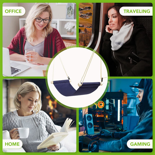 iMissiu Adjustable Office Foot Rest | Portable Under Desk Hammock with Headphones Holder (Blue)