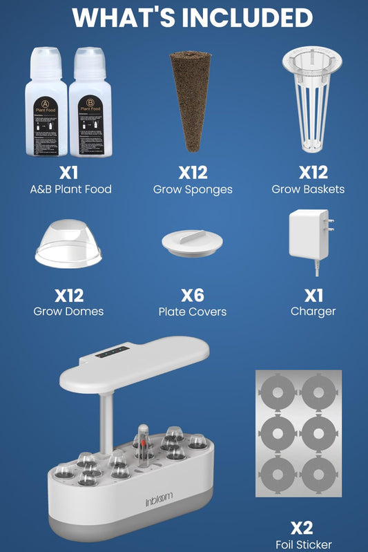 inBloom 12 Pods Hydroponics Growing System Indoor Garden with LED Grow Light and Pod Kit, Plants Germination Kit with 4.2L Water Pump Accelerate, Height Adjustable, Gardening Gifts for Women, White