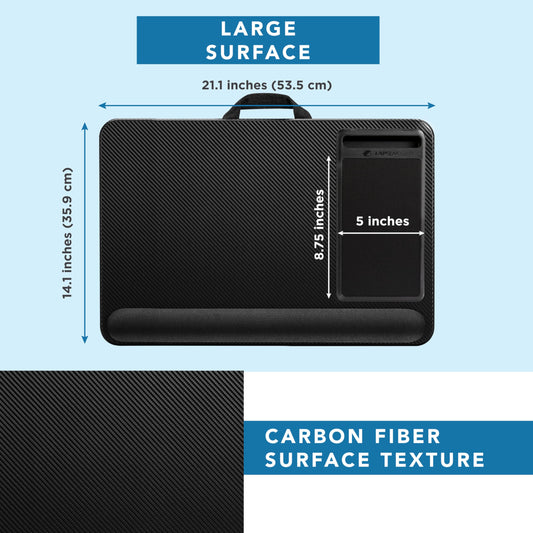 LAPGEAR Home Office Pro Lap Desk with Wrist Rest, Mouse Pad, and Phone Holder - Black Carbon - Fits up to 15.6 Inch Laptops - Style No. 91598