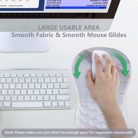 Laokiiy Mouse Pad Wrist Support, Ergonomic Mouse Pad with Wrist Rest, Comfortable Computer Mouse Pad for Laptop, Pain Relief Mousepad with Non-Slip PU Base White