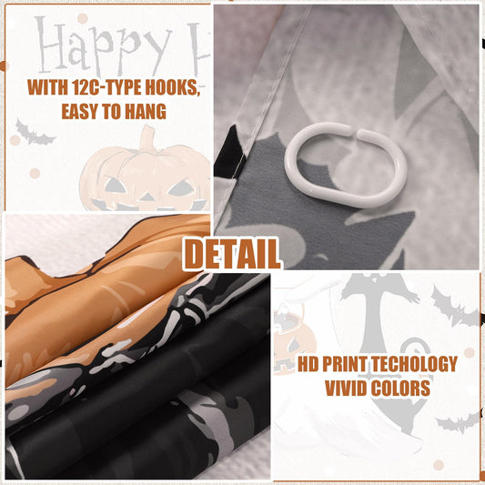 4 Pcs Halloween Ghost Shower Curtain Set 72" Halloween Bathroom Decor Set with 12 Hooks Non Slip Rug Toilet Lid Cover and Bath Waterproof Mat Restroom Shower Accessories Haunted Spooky House Decor