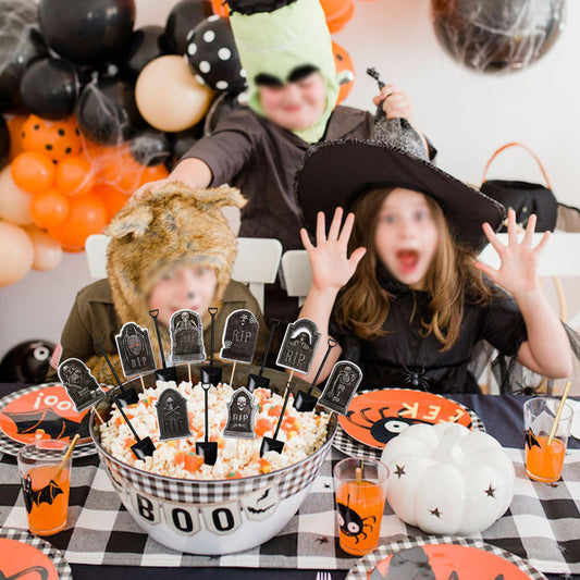 48 PCS Halloween Cupcake Toppers Tombstone Cupcake Picks Novelty Mini Shovel Spoons Horrible Gravestone Skeleton Cupcake Decorations for Halloween Theme Birthday Party Cake Decorations Supplies