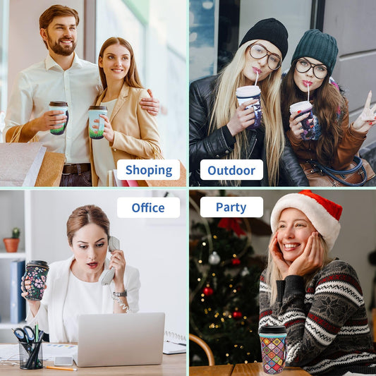 4Pack Reusable Iced Coffee Sleeve Insulator Sleeves for Cold Drinks Beverages, Neoprene Cup Holder for Most Coffee, Fits 30-32oz Large Cups (Sugar Skull with handle)