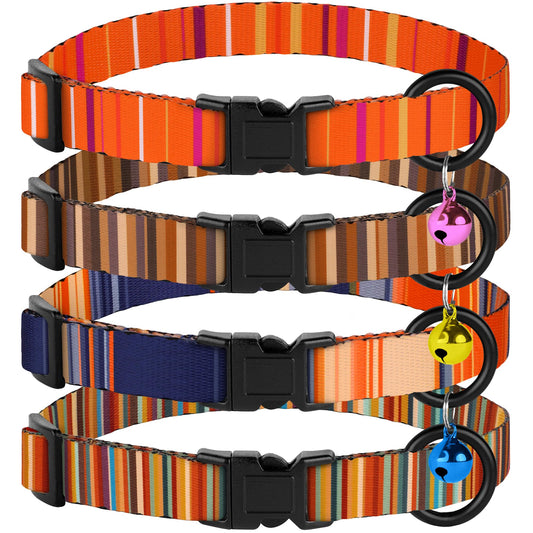 4PCS Breakaway Cat Collars with Bell, Cute Kitty Adjustable Safe Kitten Collars, 4-Pack, Nylon Pet Collars Tribal Striped Aztec Print (Striped)
