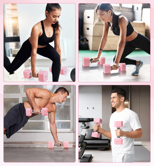 20LBS Adjustable Dumbbell Set for Women Men, 4 in 1 Free Weights Dumbbells Set Hand Weights Set Adjust Dumbbell Weight Set for Home Gym Exercise Workout Strength Training Equipments, Pink