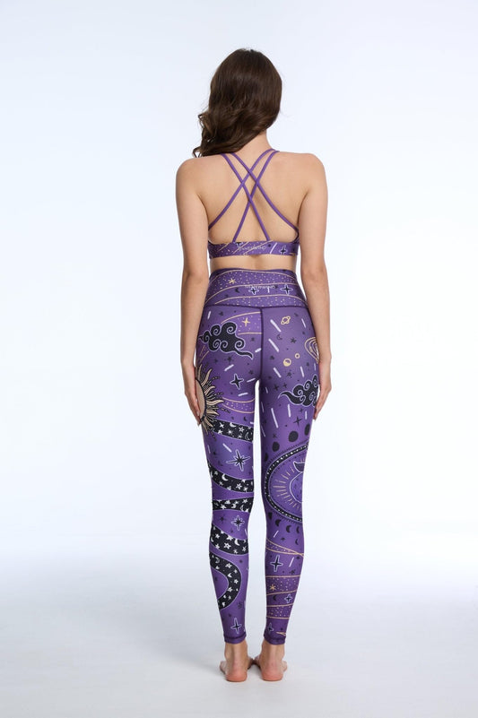 Women's Serpent Cosmos V Shape Strappy Sports Bra- Padded Medium Support Yoga Bra for Workout Fitness Pilates-Playful Halloween Pumpkins Design