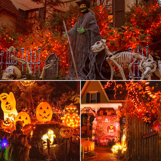 woohaha Outdoor Halloween Lights, 2PACK 13ft 50 Count Incandescent Blubs & Green Wire Mini Lights, 120 V High-Voltage Connectable Light String, for Indoor Patio Garden Tree Party Decoration, Orange