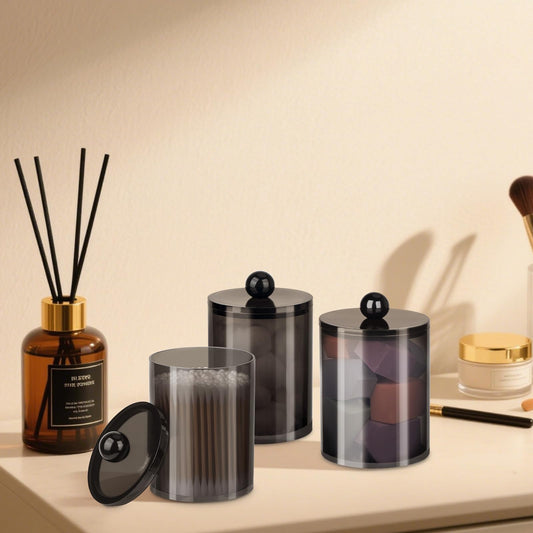 XIPENGKEJI 2 Pack Qtip Holder,Canister Apothecary Jar Set, Bathroom Jars with Lids Set for Cotton Swabs, Balls, Pads, Floss Picks,10oz-12oz Plastic Canisters Restroom Bedroom Vanity Organizer(Black)