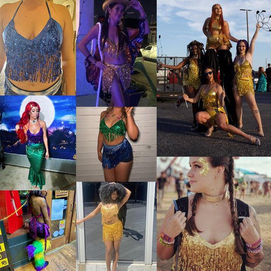 Wuchieal Sequin Halter Bra Top Salsa Belly Dance Boho Festival Clubbing Tribal Bra BH Top (One Size, Black with Colorful Beads)
