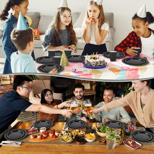 Xiangqu 175 Pcs Black Plates and Napkins 25 Guest Halloween Plates Set Black Party Supplies Includes Scalloped Party Plate Napkins Cups Plastic Cutlery for Birthday, Halloween, New Year