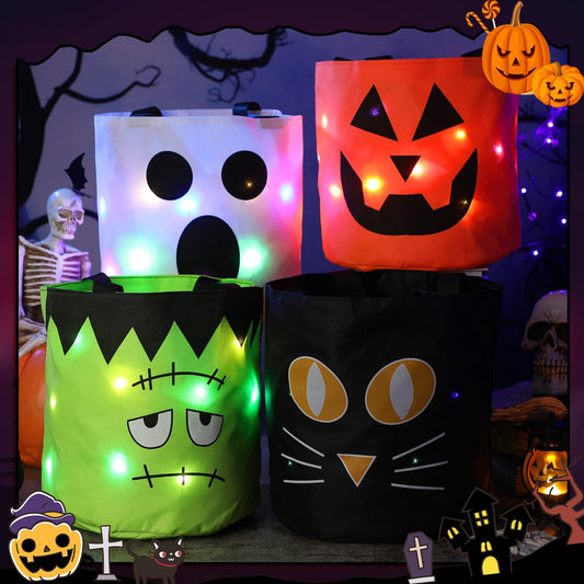 Yaomiao 4 Pcs Halloween Trick or Treat Bucket for Kids Light up Pumpkin Candy Bags LED Halloween Treating Baskets Reusable Goodie Gift Tote Bag for Party Favor Supplies(Classic Color)