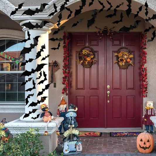 XWSG 60PCS Halloween 3D Bats Decoration Halloween Large Bats Wall Decor 4 Different Sizes Realistic PVC Scary Black Bat Sticker for Home Decor DIY Wall Decal Bathroom Indoor Halloween Party Supplies