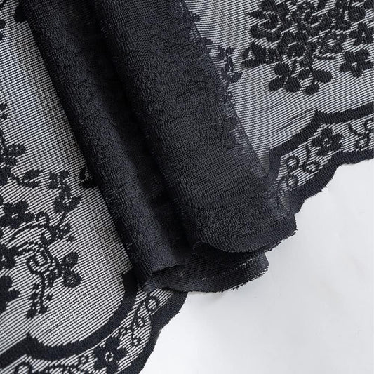 YJ YANJUN Black Sheer Curtains 54 inch Length- Goth Victorian Kitchen Lace Curtain Panel Halloween Short Curtains for Bathroom Window Coffin/Witchy/Gothic Home Decor 52 x 54 Inch Black