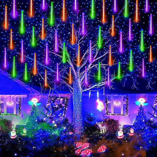 YIQU 2-Pack Extendable Halloween Lights Outdoor, 18 Tubes 432 LED Meteor Shower Falling Icicle Rain Lights Plug-in for Tree Garden Patio Horror Decorations (Orange Purple and Green)