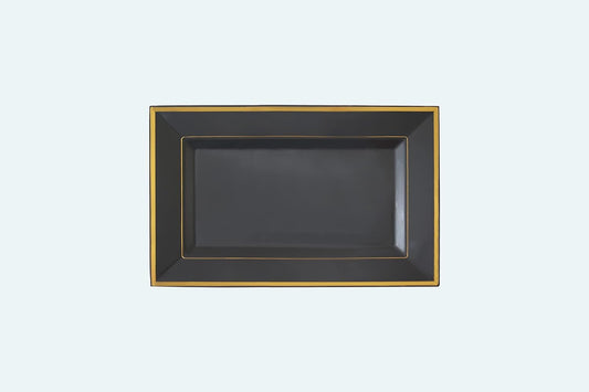 Yumchikel Black & Gold Rim Rectangular Plastic Serving Trays, 13 x 8 Inches, 6 Pack, Durable Disposable, Ideal for Food, Dessert, Cake, Drinks