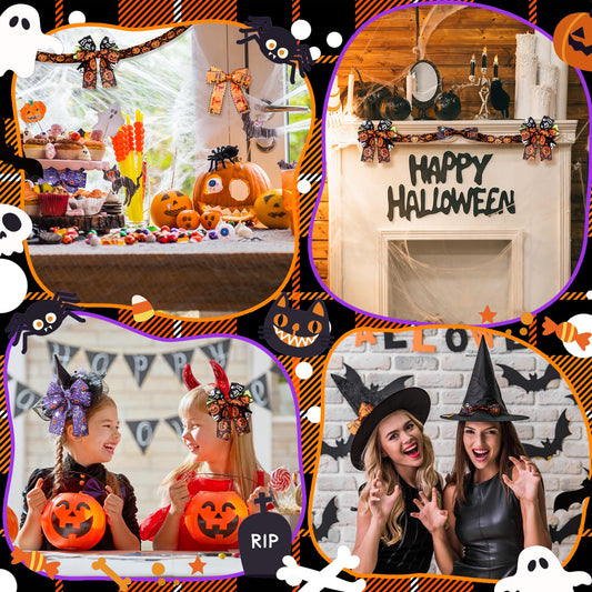 Yuxung 6 Rolls 30 Yards Halloween Wired Edge Ribbon for Wreaths Bat Spider Web Pumpkin Print Grosgrain Ribbon Ghost Witch Hat and Leg Ribbon Halloween Party Decorative Ribbon Supplies