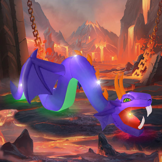 12FT Halloween Inflatables Outdoor Decoration, Large Flying Dragon with Openning Red Mouth Blow Up, Giant Outside Hanging Inflatable with 7 LEDs Light Up for Holiday Yard Lawn Patio Parties Display