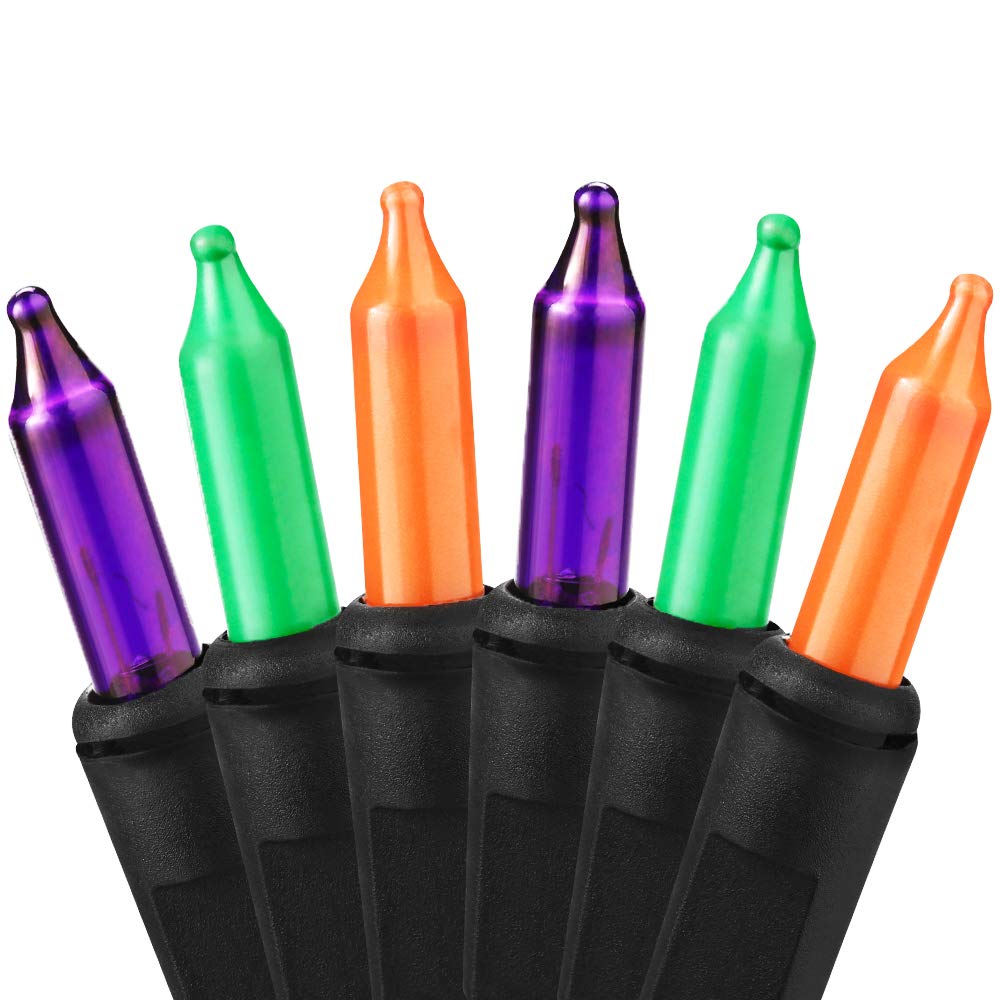 ⭐️Halloween String Lights - 24ft 100 Incandescent Orange&Purple&Green Mini Bulbs Lights, Halloween Lighting Decor for Outdoor&Indoor Use, Fairy Garden, Yard, Home, Party, Holiday, Halloween Decoration