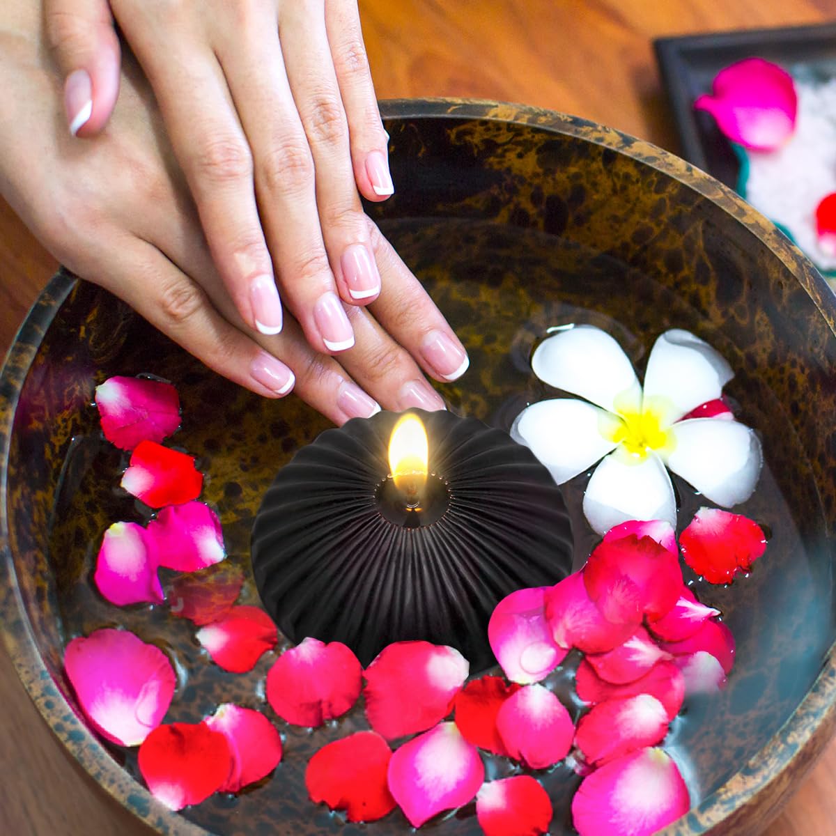 MULTIPURPOSE: Floating candles make a statement and create the perfect setting for any event.They are commonly used asengagement or wedding receptions, dinner parties, garden or beach parties., aromatherapy, outdoor patio ambience, restaurant tables etc. These black unscented candles will definitely be the centerpieces of your beautiful event.