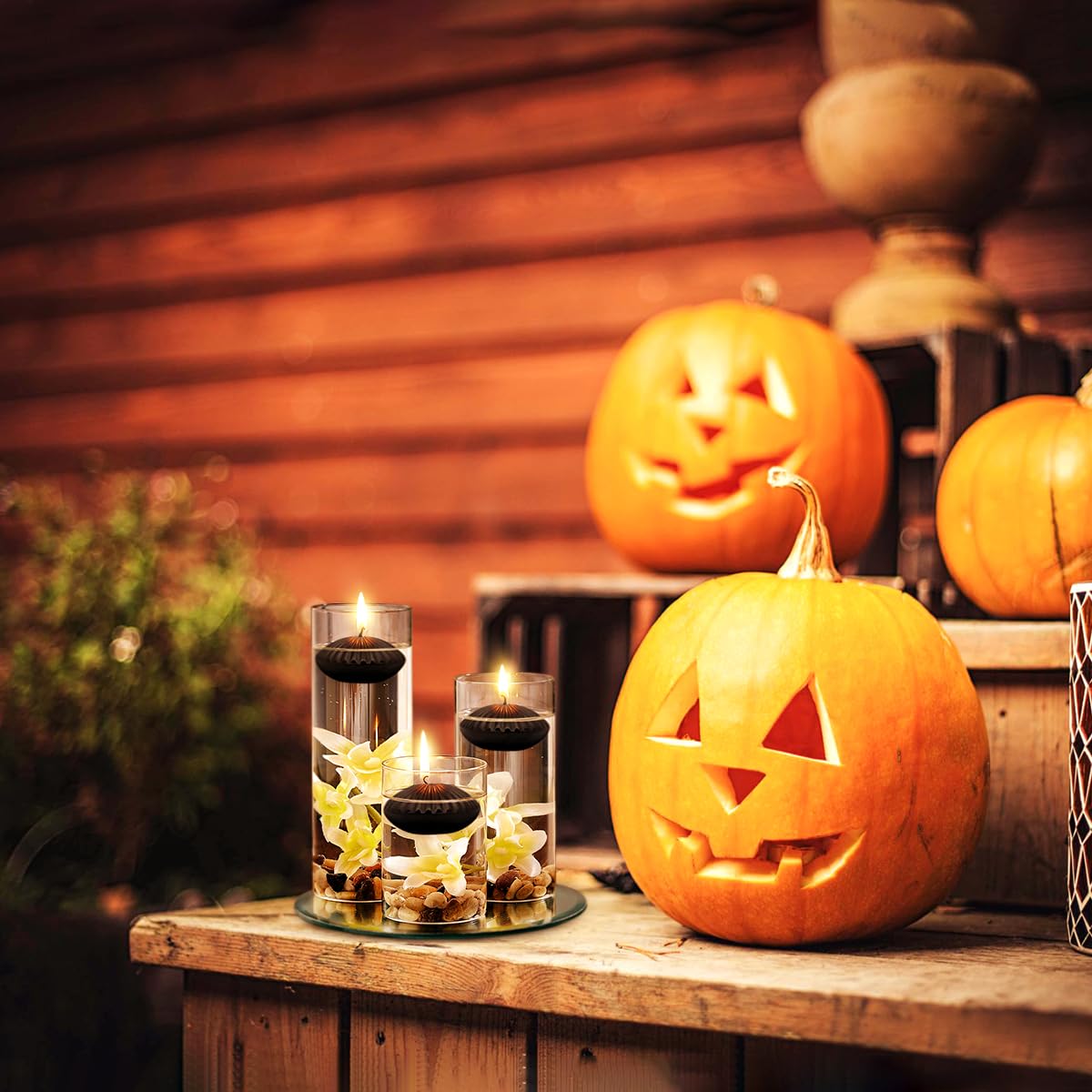 12 Pack 3 Inch Black Floating Candles, 10 Hour Unscented Dripless Tealight Candles for Cylinder Vases, Centerpieces at Wedding Party Halloween - Wavy Float Candle