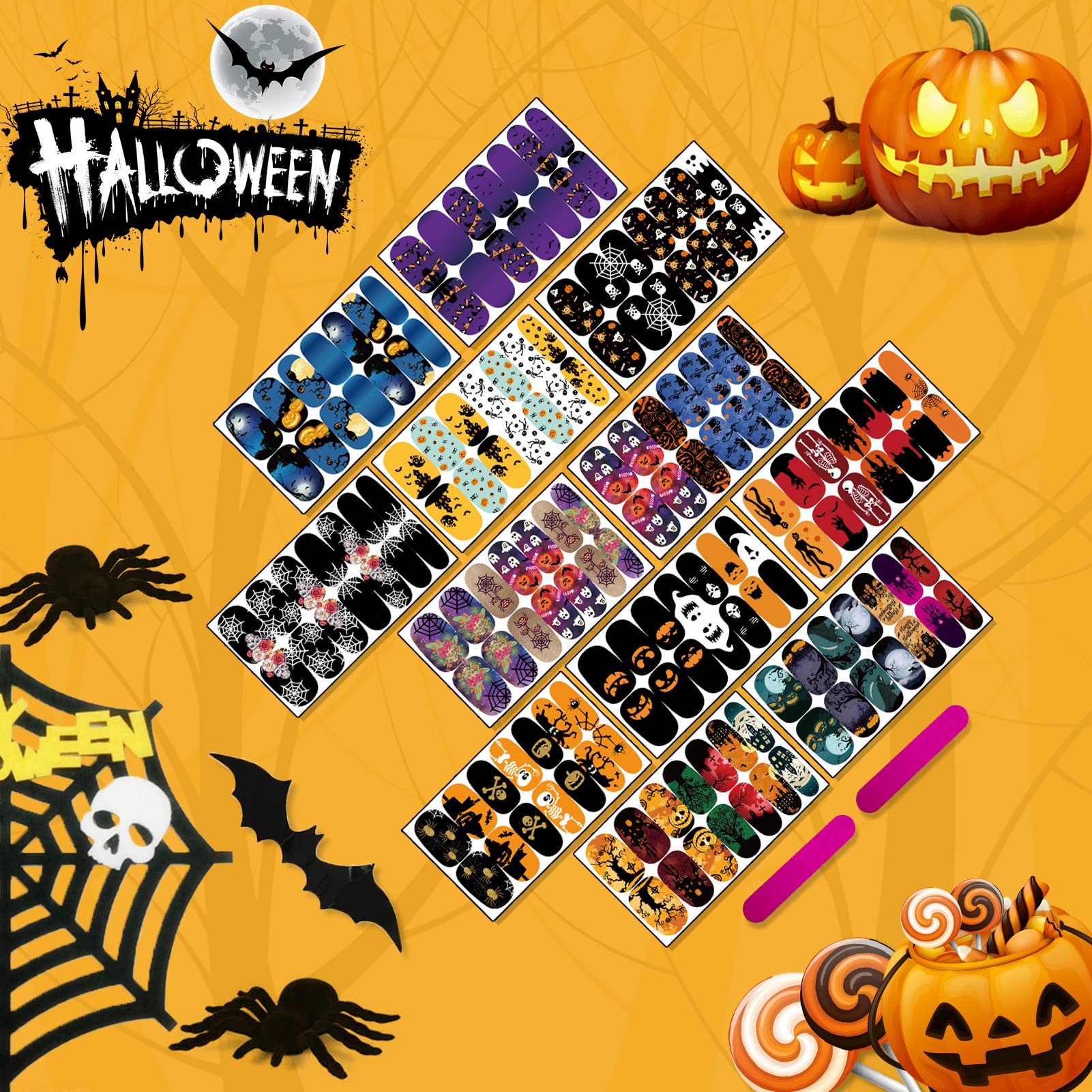 12 Sheets Halloween full nail stickers + 2 pcs nail files