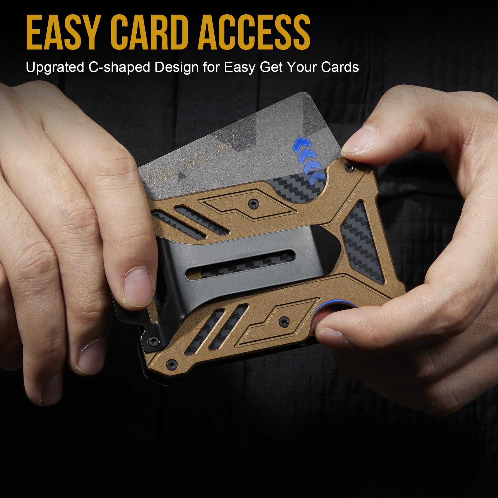 • Easy Card Access: Our thoughtfully crafted C-shaped aperture ensures quick and hassle-free card access. With a simple slide or pull, the aperture opens smoothly, allowing you to effortlessly place or retrieve your cards. Enjoy the convenience of a secure yet easily accessible card storage solution, enabling you to locate the desired card instantly whenever you need it