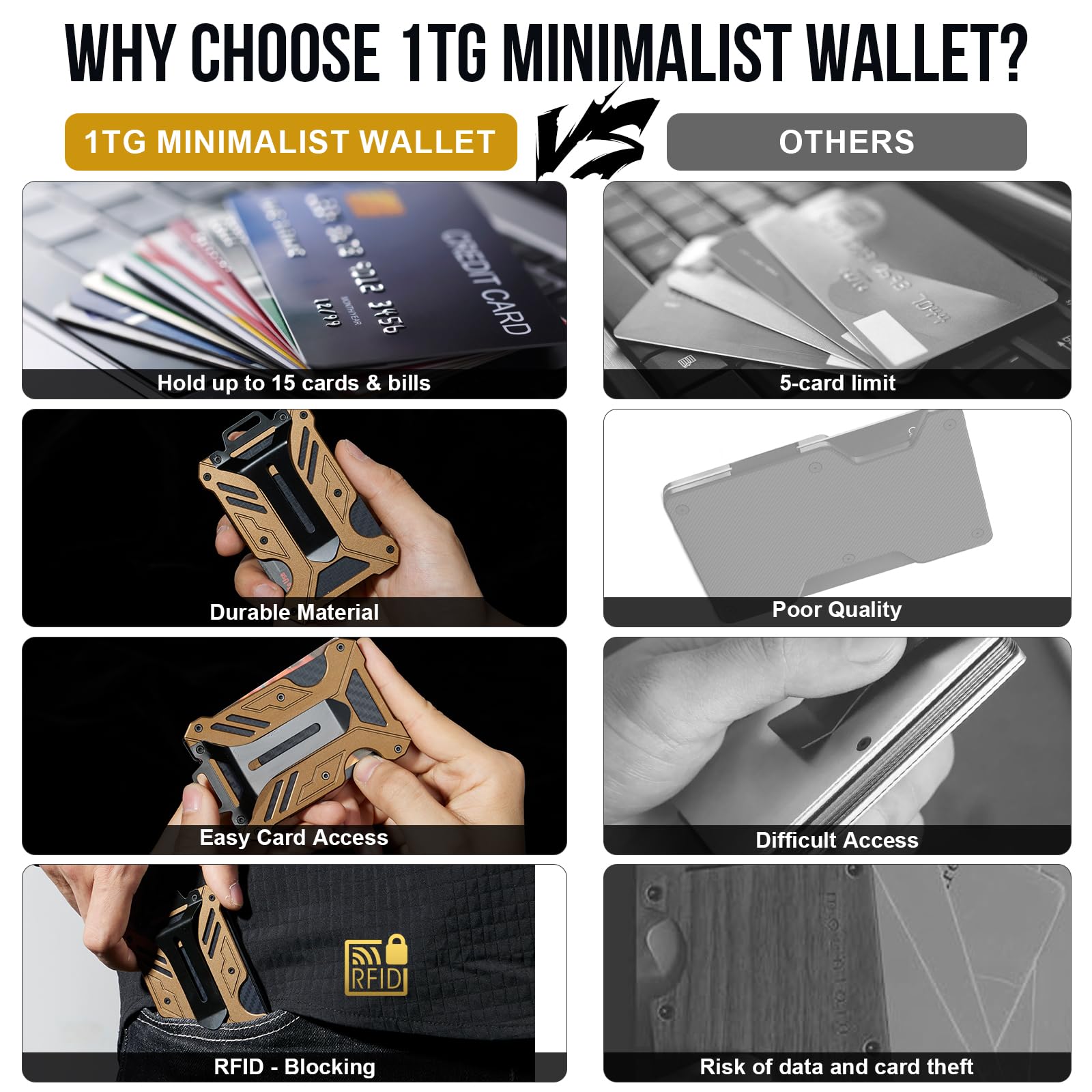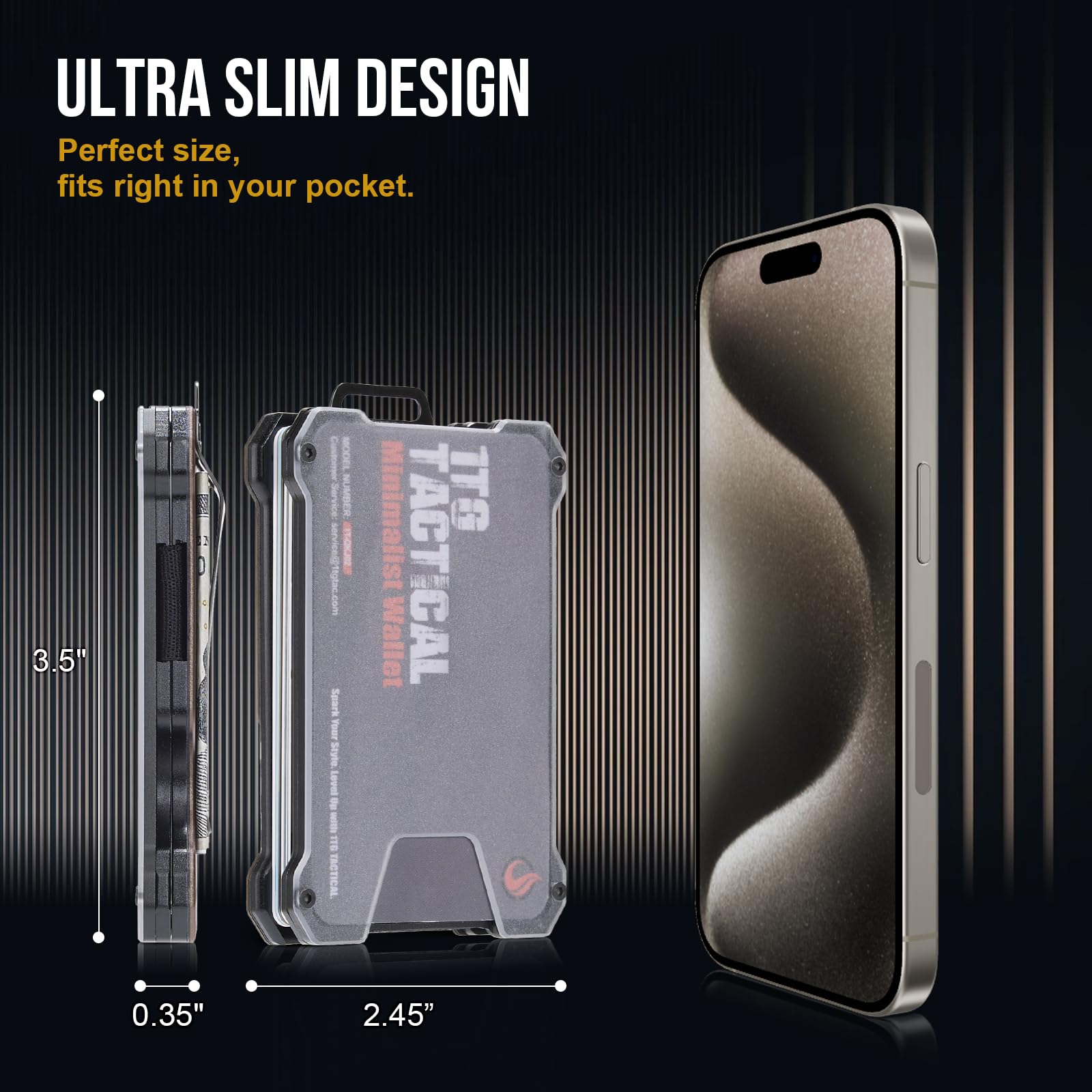 1TG Tactical Minimalist Slim Wallet with Moeny Clip, Front Pocket RFID Blocking Wallet Cash Holder, Versatile Credit Card Orgainzer, ID Card Badge Holder for Men