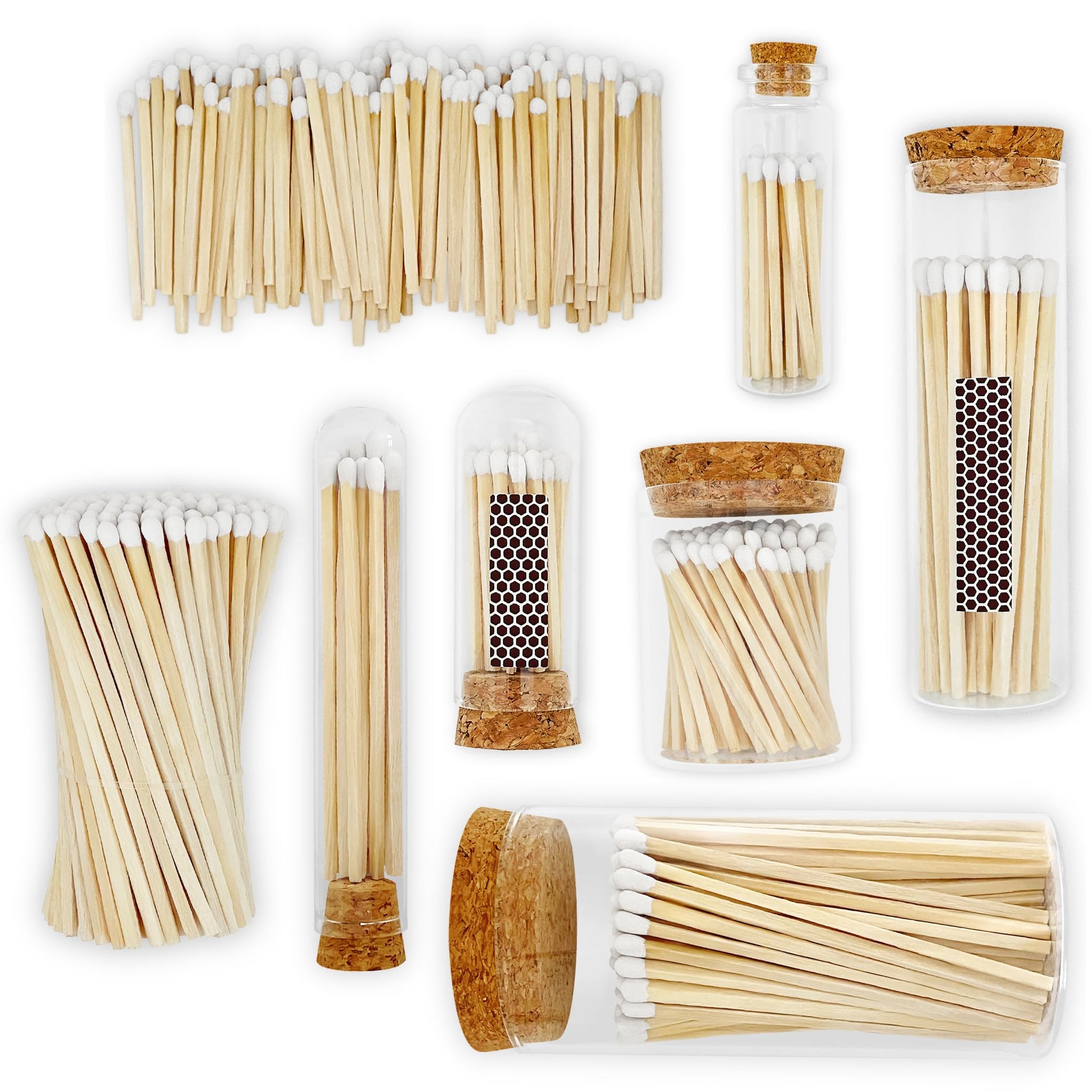 2" Classic White Tip Safety Matches | 100+ Bulk Artisan Matchsticks with Bumble Striker Stickers by Thankful Greetings| Decorative Candle Accessories | Unique & Fun for Your Home Decor, Gift, & Events