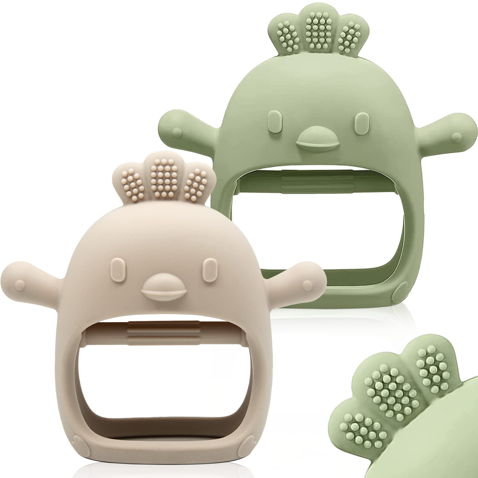 • 【Give your little one a hand with teething】The Silicone Teething Mitten is the perfect solution for babies who aren't yet able to hold onto teethers. The soft silicone mitten fits over little hands, and the inner bar provides extra grip support for babies to grasp. Plus, the mitten protects babies from chewing on their hand—or anything else they could get their teeth on. The character's 'arms' mimic a nipple, helping further soothe fussy little ones.