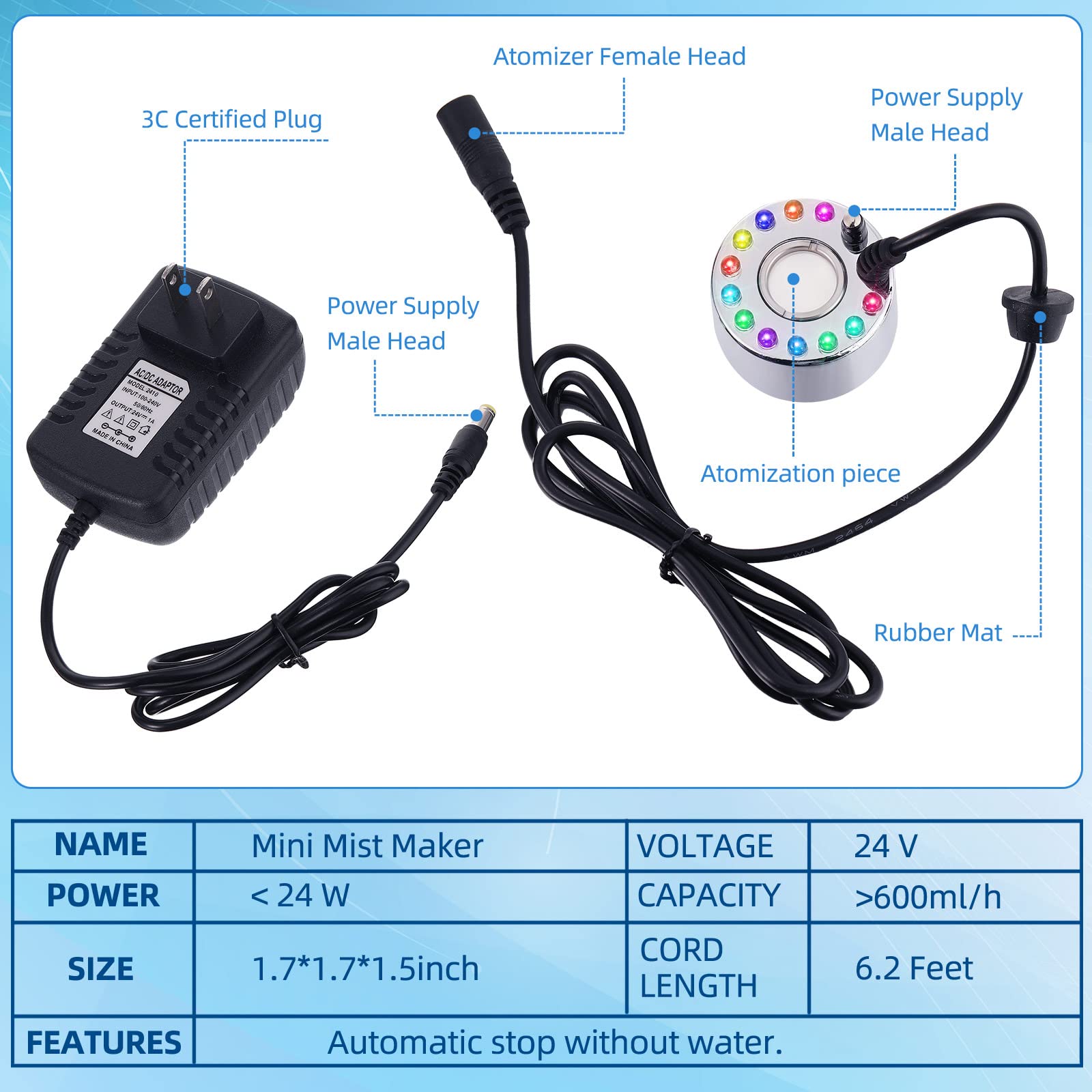 • Simple to Use: Halloween mist maker is easy to operate, it is designed with 24V voltage, you just need to plug in the power, and then put them into the water to work, giving you a convenient use experience