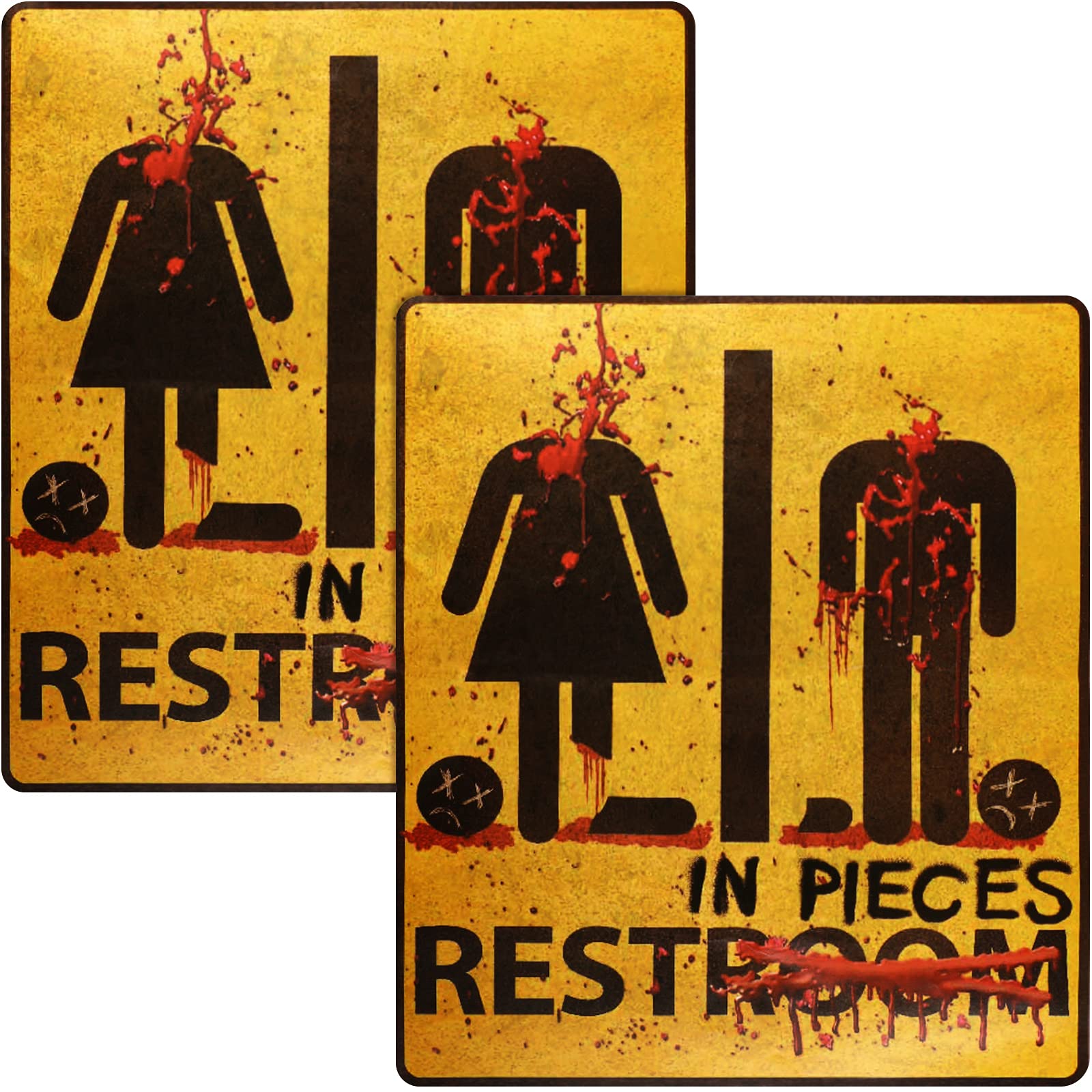 2 Pieces Halloween Stickers Scary Restroom Sign Sticker Halloween Door Wall Decals Decoration for Ghost House and Horror Themed Parties