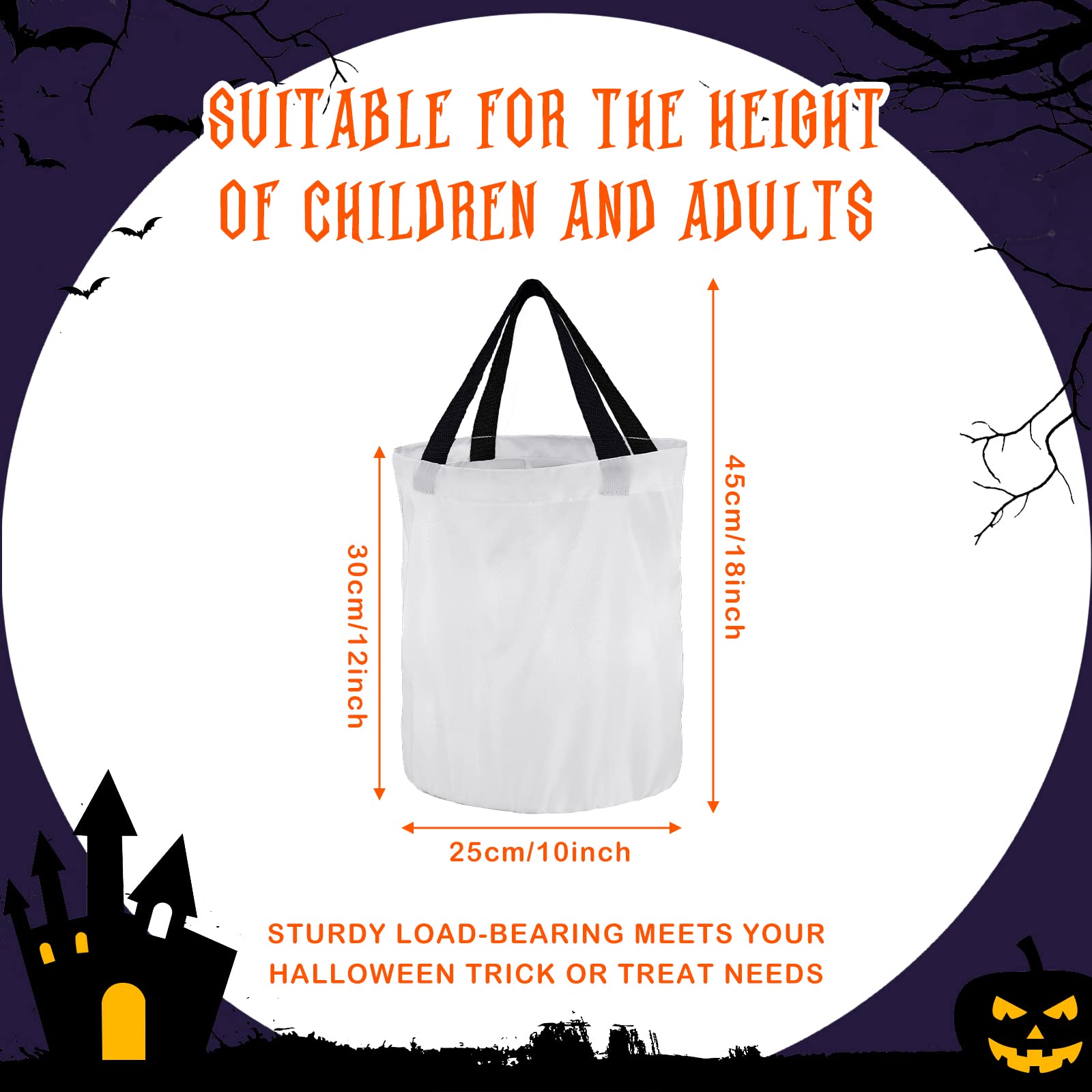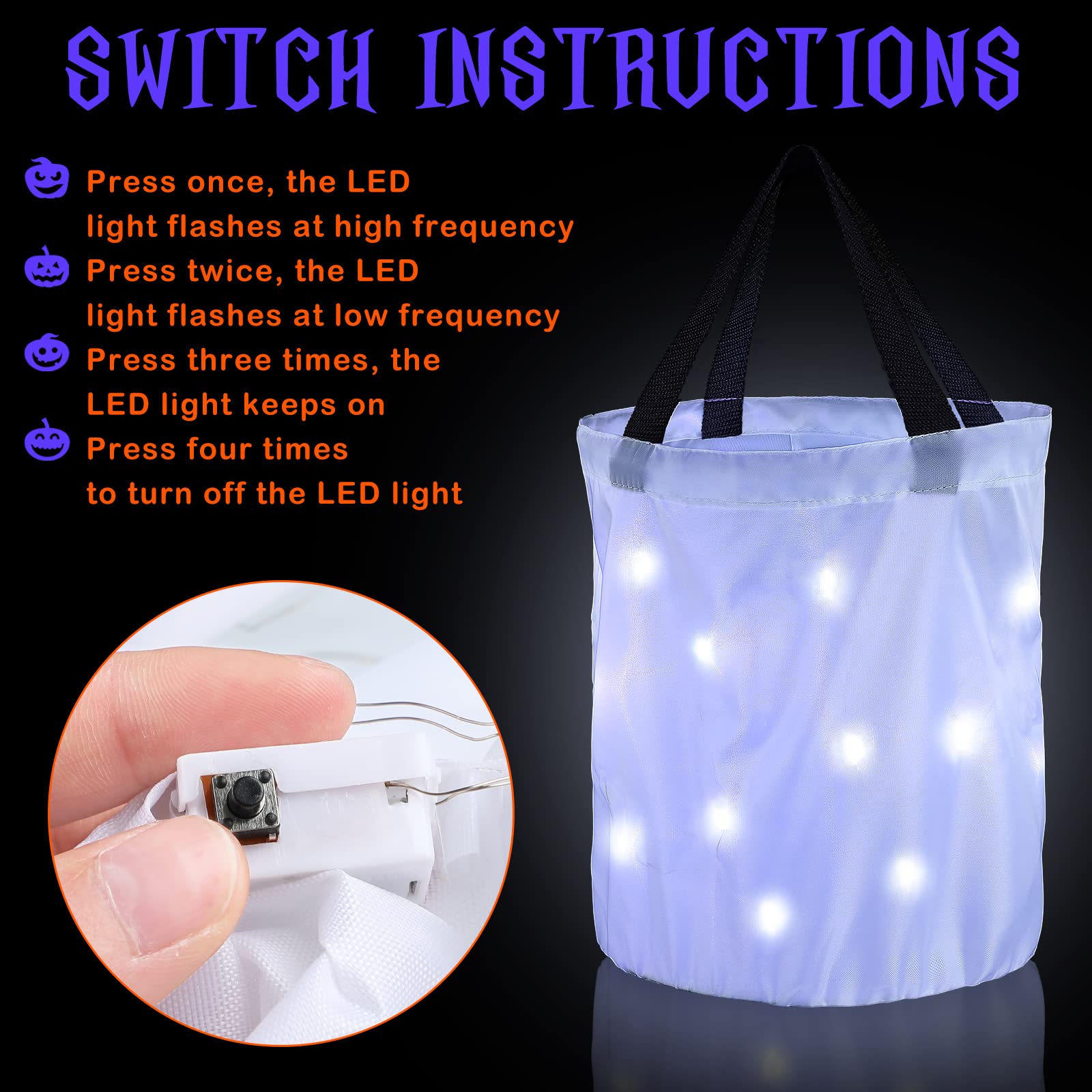 2 Pieces LED Light Halloween Trick or Treat Candy Bags Light up Goodie Trick or Treating Bags Kids Multipurpose Reusable Gift Bucket for Halloween Birthday Party Favor(White)
