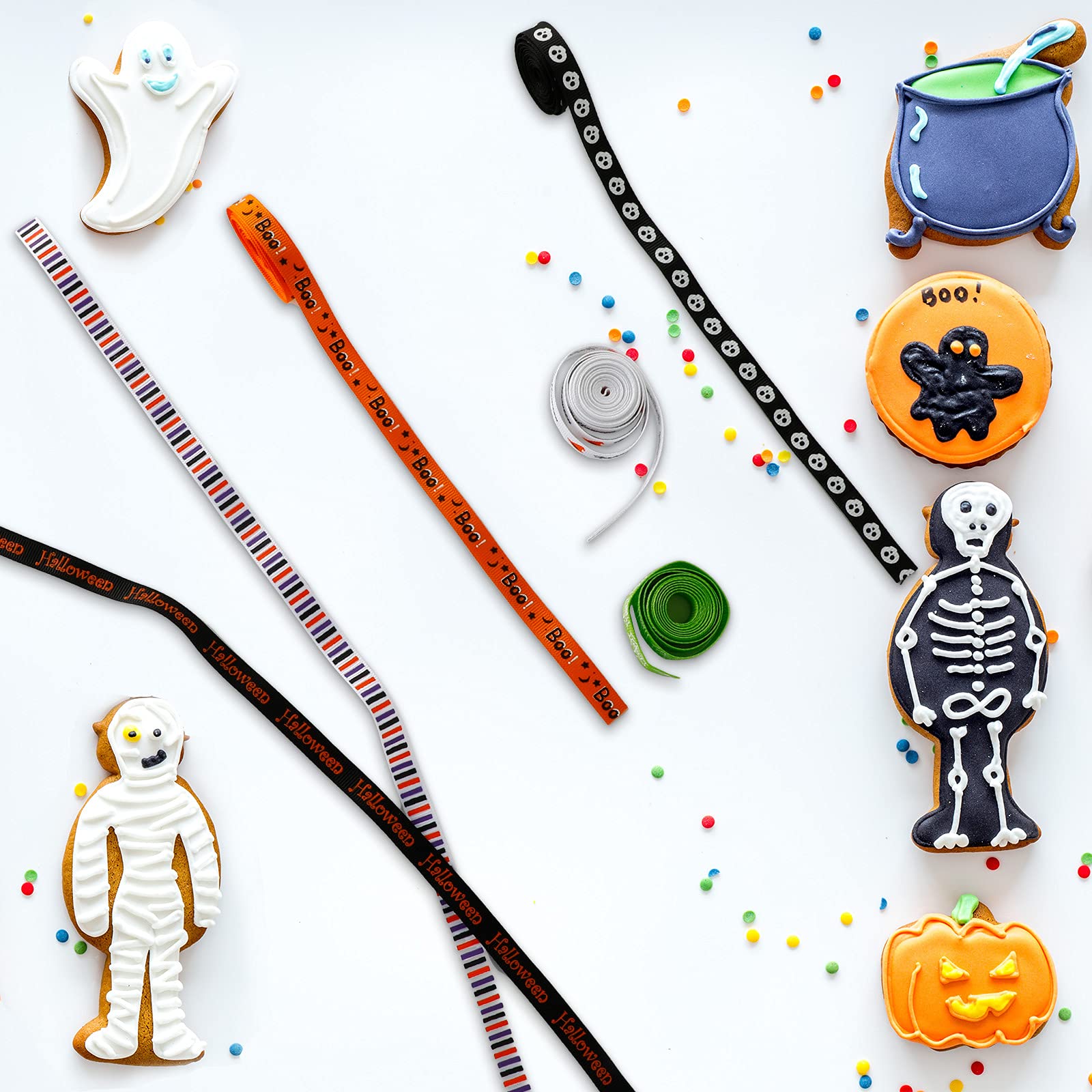 Where it works: Halloween ribbons can be applied for a variety of purposes, not only at home as a treat, but also in craft stores, party stores, or gift stores for tying and decorating