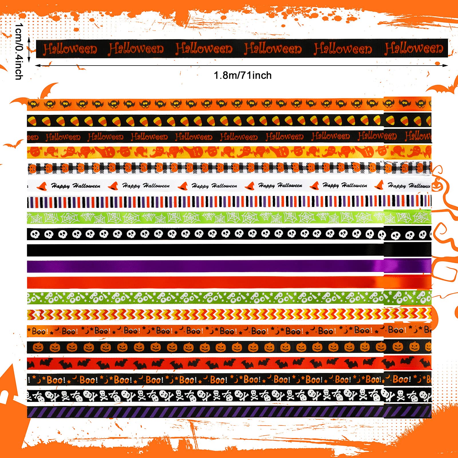The package includes: You will get 20 rolls of Halloween ribbons; Each one of our ribbons is styled in a different way; You can choose from enough ribbons in enough quantities to meet your DIY decorating needs