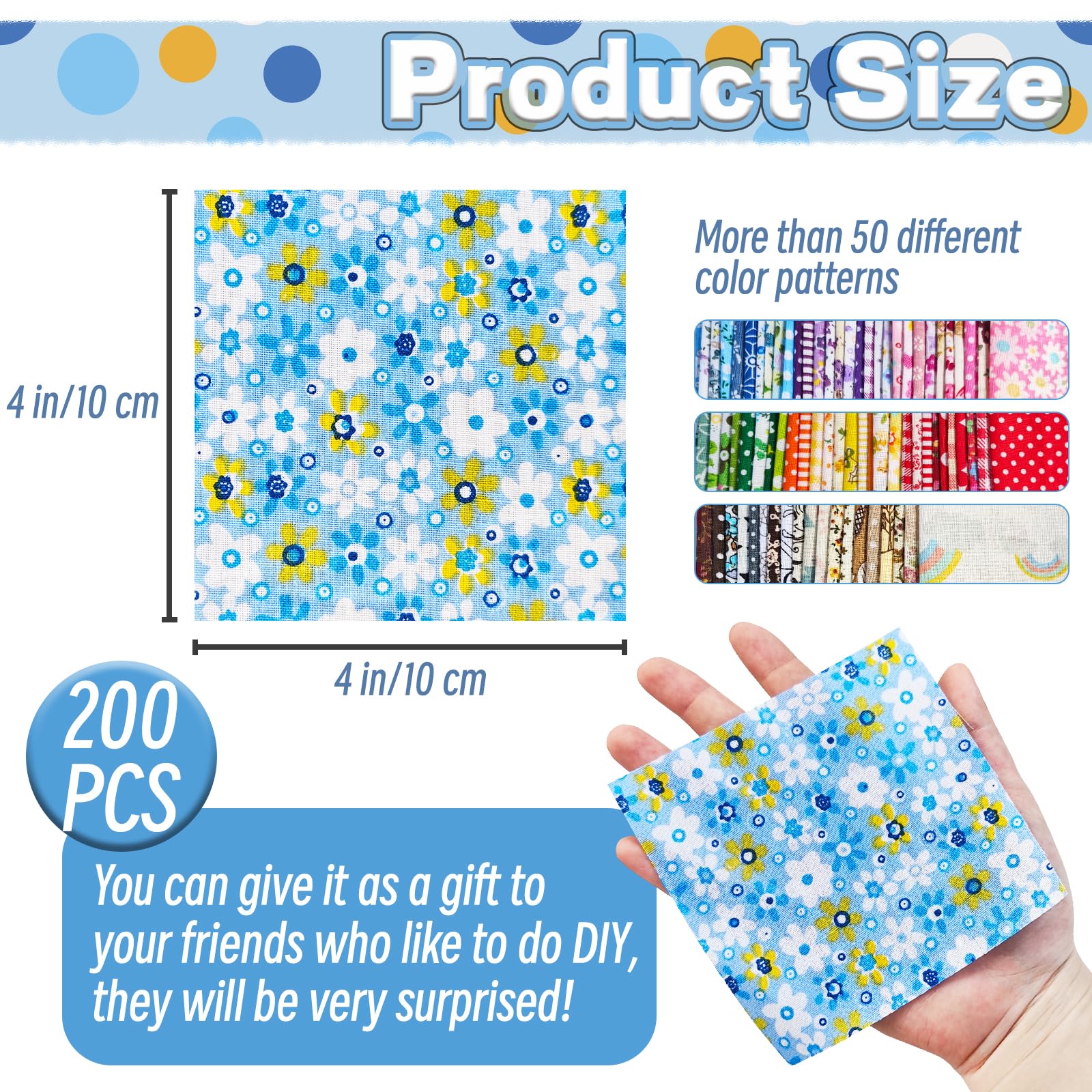 • 【Package Include】:You will receive 200 pcs cotton craft fabric bundle squares in your package.They contain more than 50 different color patterns to meet your usage needs.