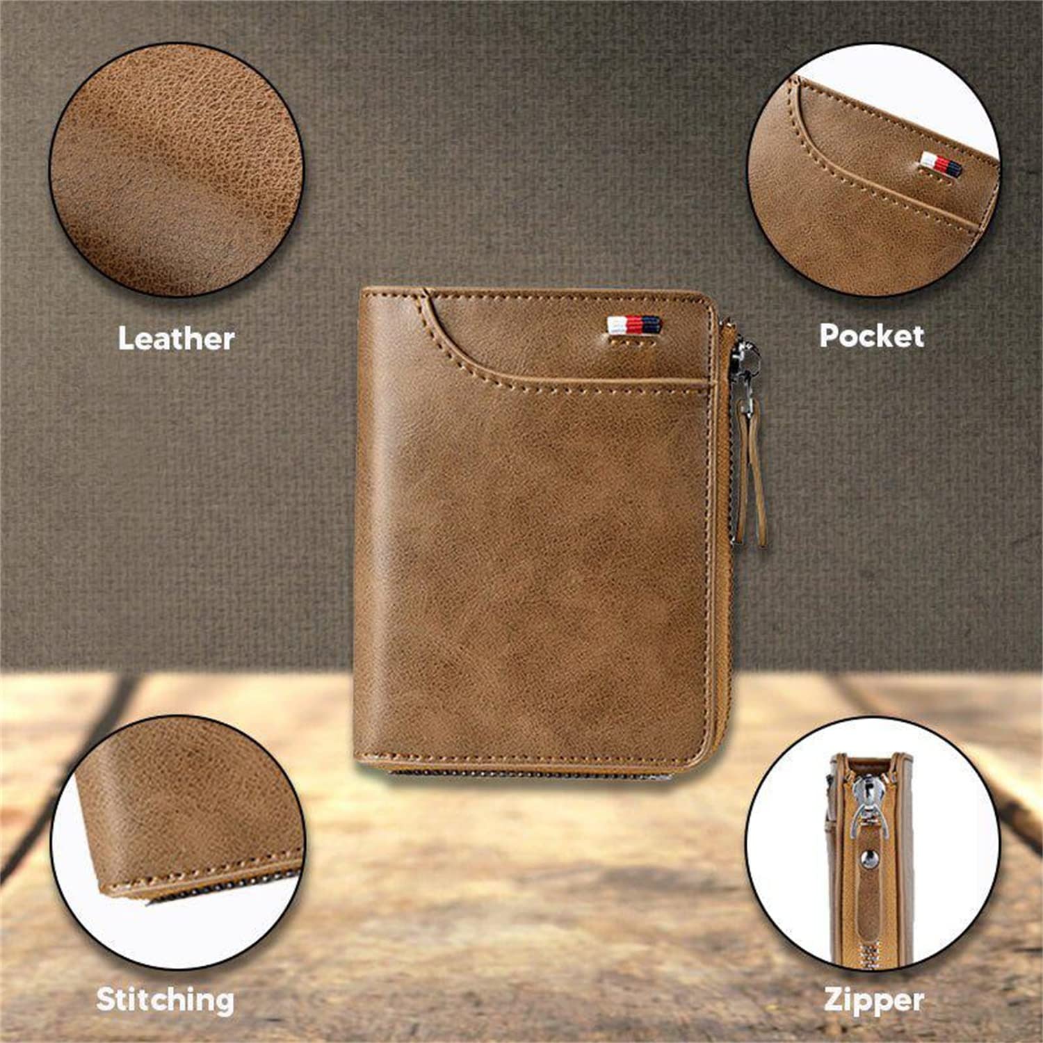 2023 New Multi-Functional RFID Blocking Waterproof Durable PU Leather Wallet, Large Capacity Zipper Wallets for Men Holds 1-14 Cards, Soft Slim Genuine Leather RFID Blocking Wallet Technology (KHAKI)