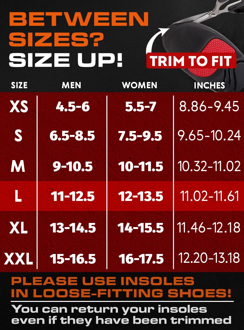 • Choose the Right Size: Ensure your insoles for men and women fit correctly by checking your shoe size
