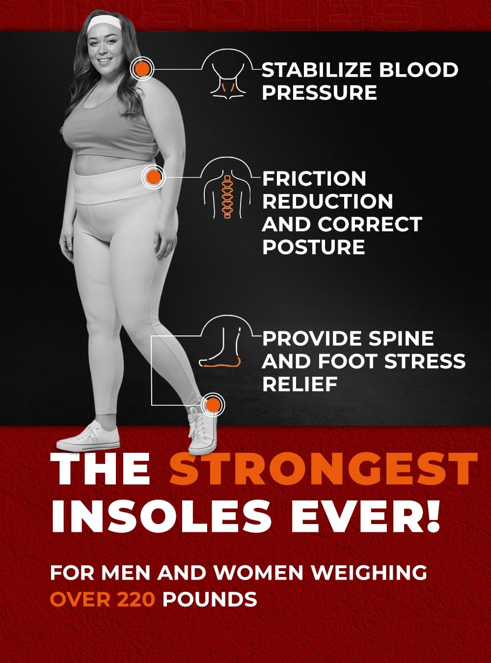 • Built to Last: Shoe inserts for men over 220 lbs feature heel and forefoot cushioning, shock-absorbing gel pads, and enhanced arch support, ensuring proper foot placement and body stability