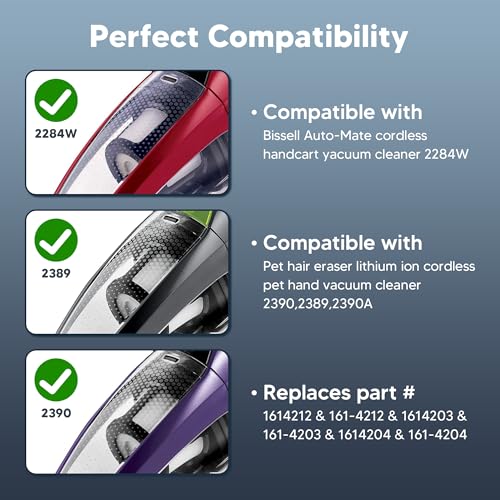 • π—£π—˜π—₯π—™π—˜π—–π—§ π—™π—œπ—§ - Compatible with Bi-ssell Auto-Mate cordless handcart vacuums / vacuumed cleaner 2284W and Bi-ssell pet hair eraser lithium ion cordless pet hand vacuum cleaner 2390, 2389, 2390A, 2579. Replace part number # 1614212 & 161-4212, 1614203 & 161-4203, 1614204 & 161-4204. (NOTE : It is a black filter , NOT a green filter)