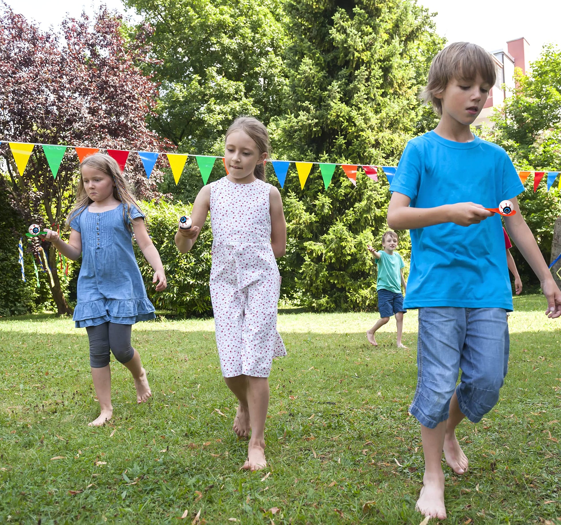 • How to Play: Balance the eyeball on the spoon and see how far you can run without dropping it. This game helps improve balance. For added challenge, introduce obstacles or require players to skip instead of walk