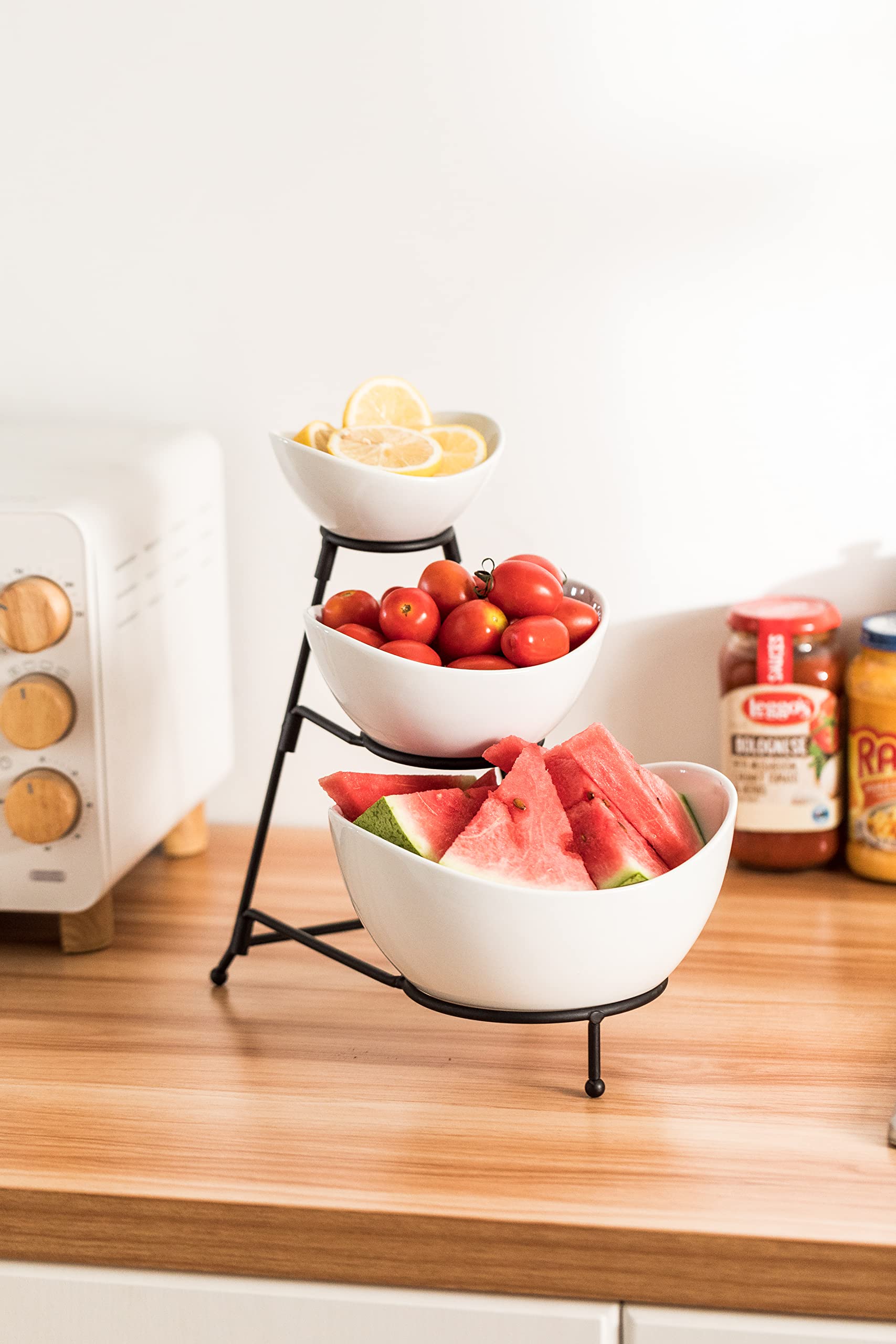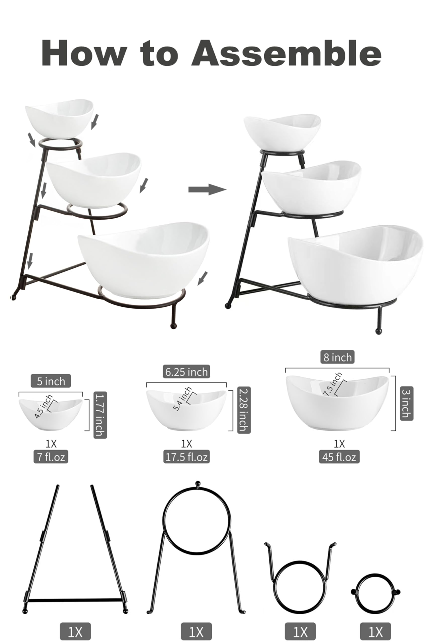 • Elegant Design: The trangle rack is strong enough to hold the porcelain oval bowls, provides more balance & stability. The bowls are different sizes, the curved edge which makes it extra stylish, looks great and does not take up a lot of space