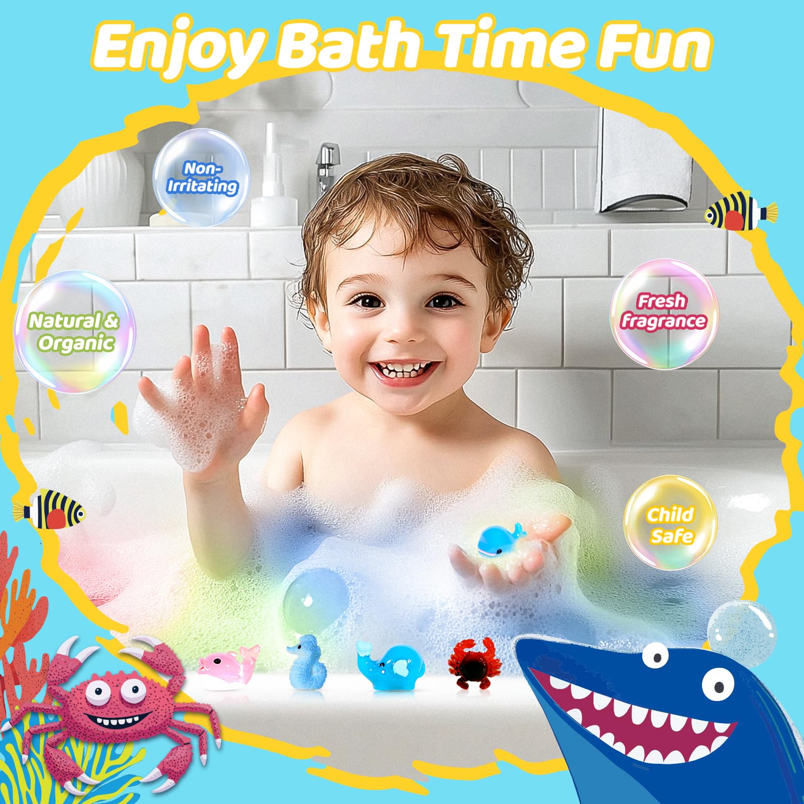• Fun Bubble Bath Experience: Put the bath bombs into the water, the bath bombs will make fizzes and release dense colorful bubbles, creating a dreamy bubble bath. As the bubbles slowly dissipate, mysterious toys slowly emerge, turning a boring bath into a fun treasure hunt. The surprise blind box experience that comes with every bath is the kids' favorite bath reward.