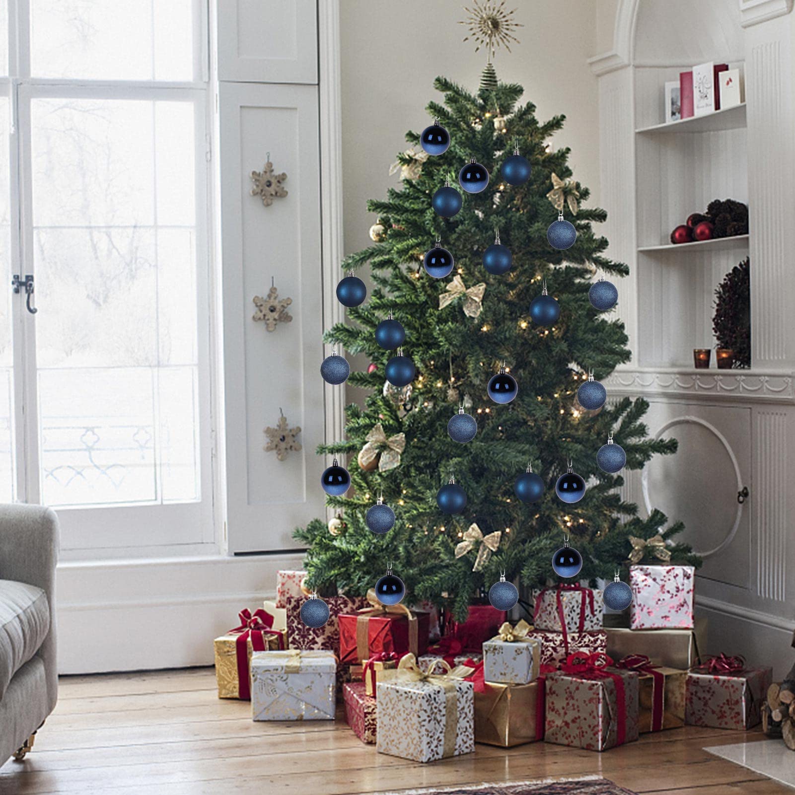 • SET OF 30: Each Ball Ornament Equips a Dismountable hook with Rope for you to hang it easily.Perfect fit for any Normal Size Tree.Tree Balls with Light Weight and Won’t weigh down from the Tree Branches