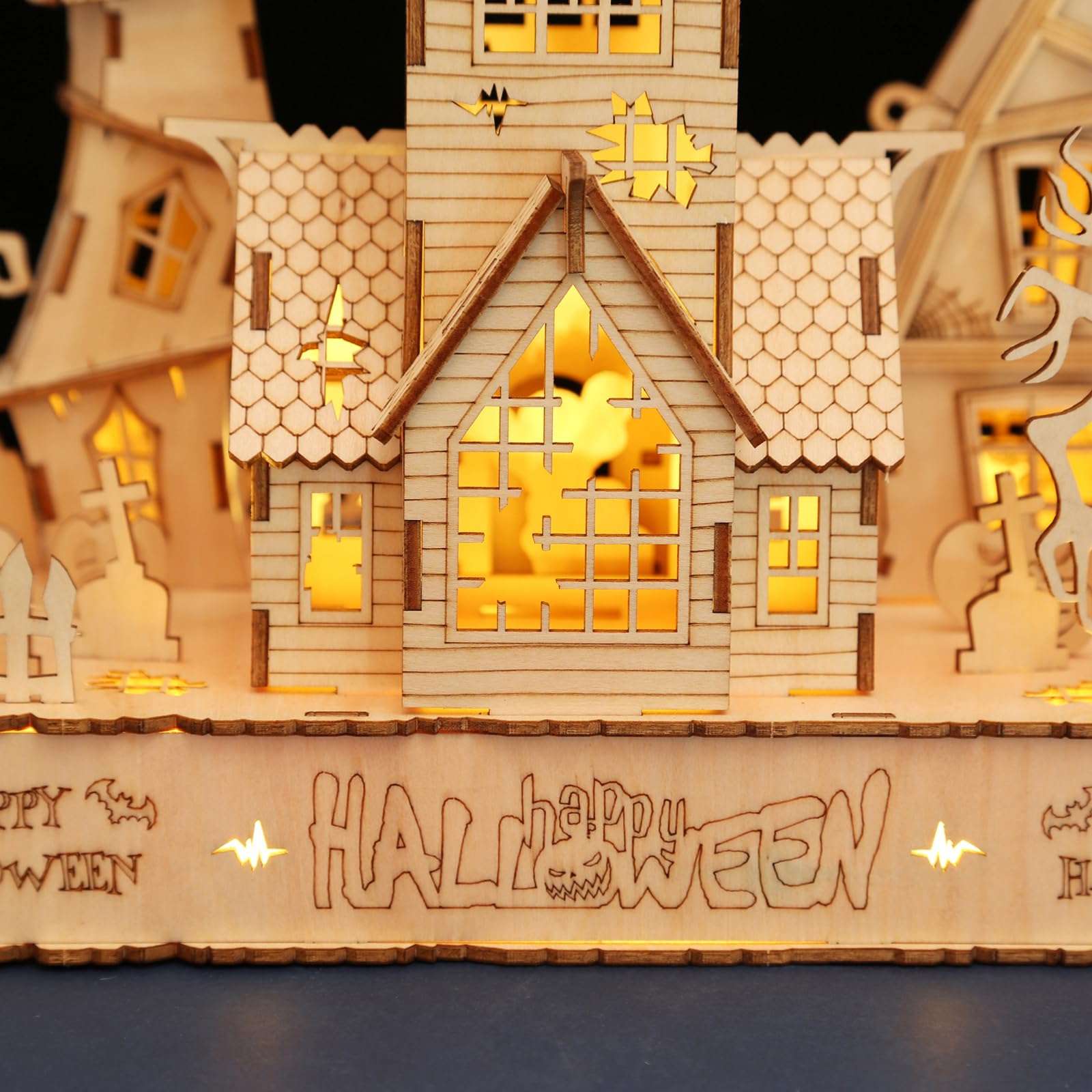 3D Wooden Halloween Haunted House Puzzles, Wood Creative Glow in The Dark Haunted House Puzzle, Assembly Model Building Kits to Build for Adults & Kids, Halloween Decor Model Kits