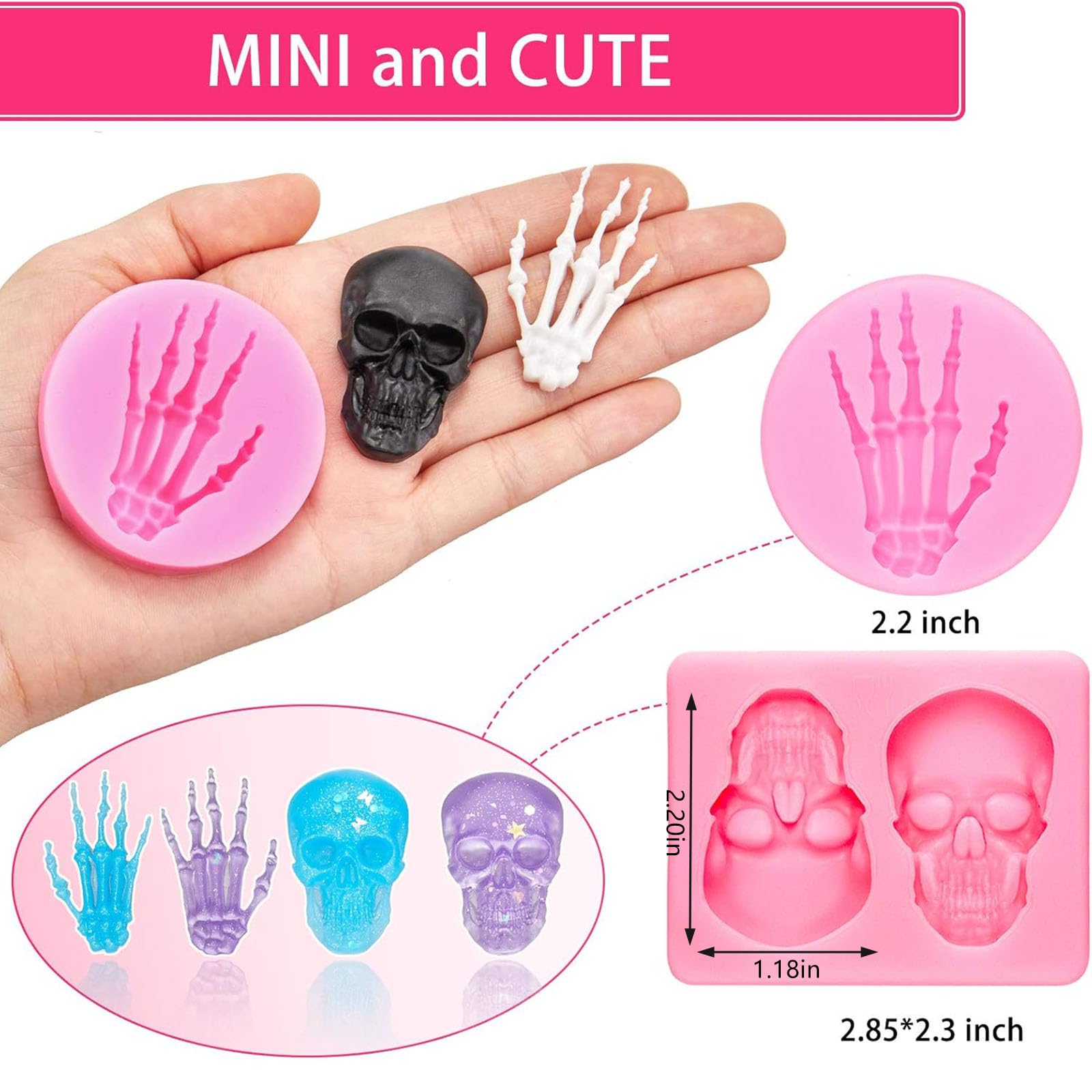 4 Pieces 3D Skeleton Hands Skull Silicone Fondant Molds Halloween Party Chocolate Candy Clay Moulds for DIY Chocolate, Cake, Pudding, Ice Cream, Epoxy Resin Mould, Pink