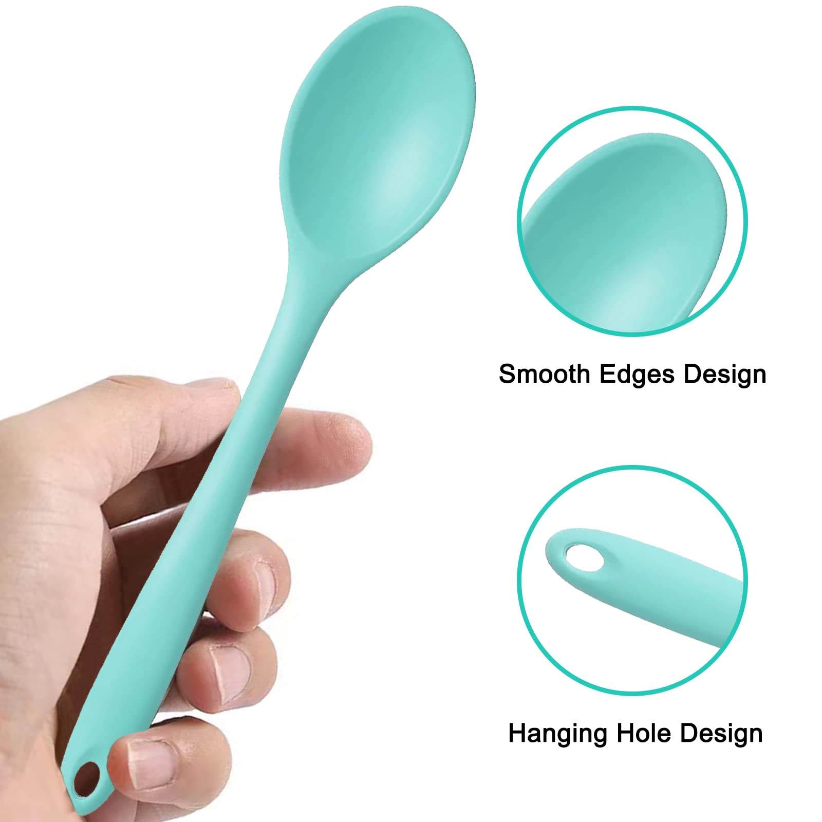 Details: 4 Pieces Silicone Mixing Spoon for Baking, Serving, Basting - Heat Resistant, Non Stick Utensil Spoons (Blue, Cyan, Gray, Green)